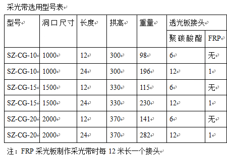 圓拱型采光帶型號選用